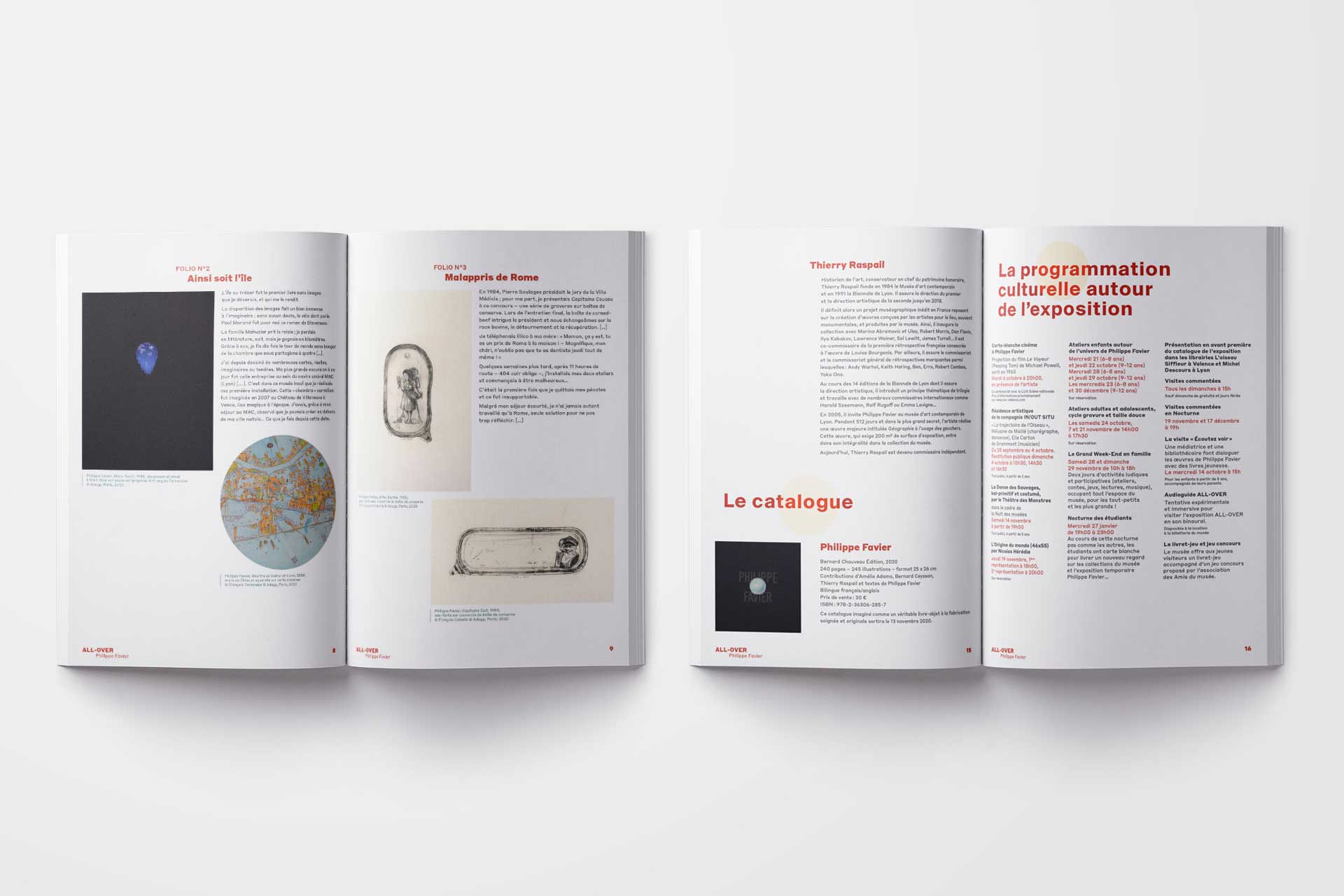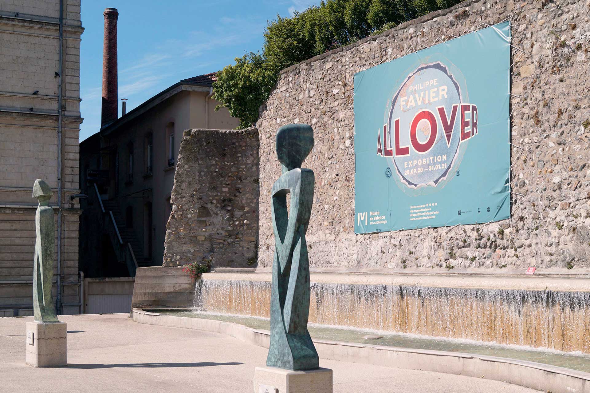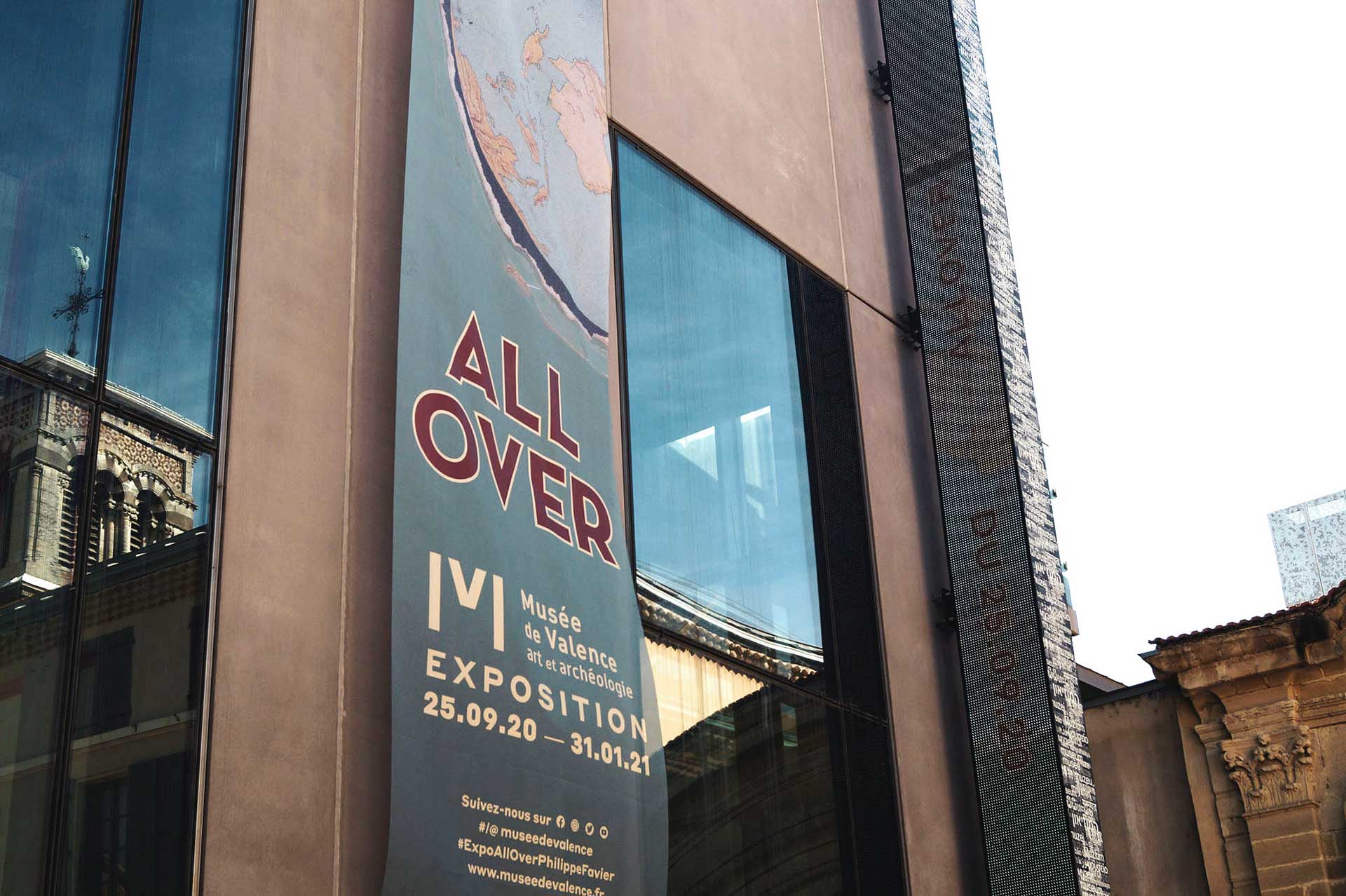 Déclinaison de l’identité visuelle de l’exposition All-over de Philippe Favier au Musée d’Art et d’Archéologie de Valence.