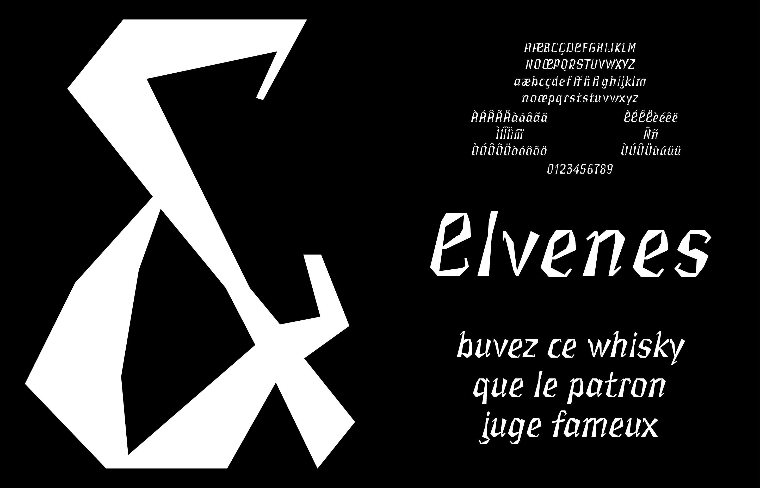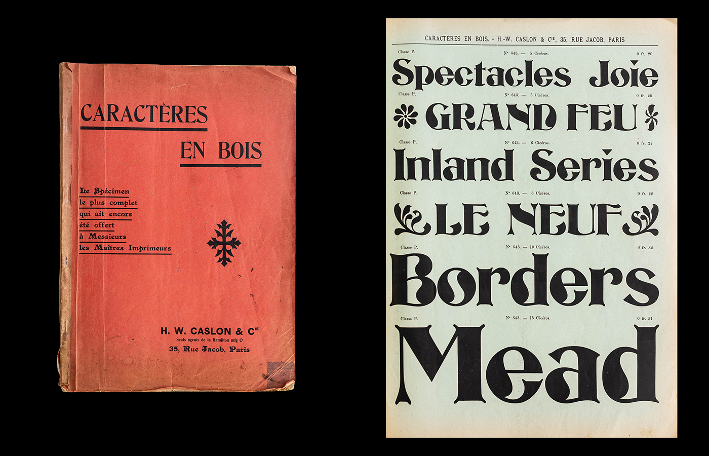 Revival basé sur le document : Caractères en bois. Le spécimen le plus complet qui ait encore été offert à Messieurs les Maîtres imprimeurs, de H. W. Caslon & Cie présentant la Inland, conçu par Nicholas J. Werner (1895).