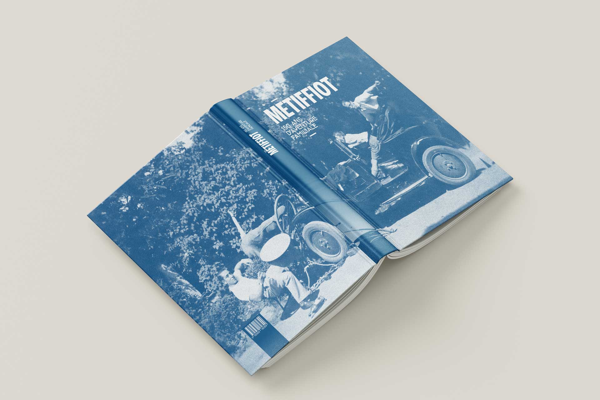 Maquettage et mise en page du livre "Métiffiot, 150 ans d'aventure familiale" auto-édité par le Garage Métiffiot à Valence.